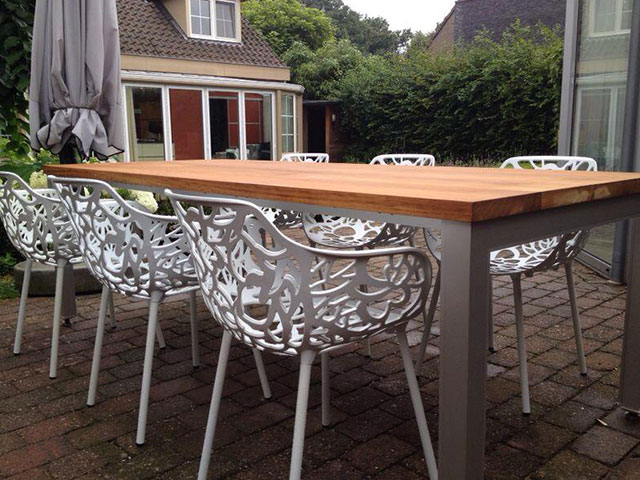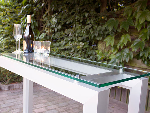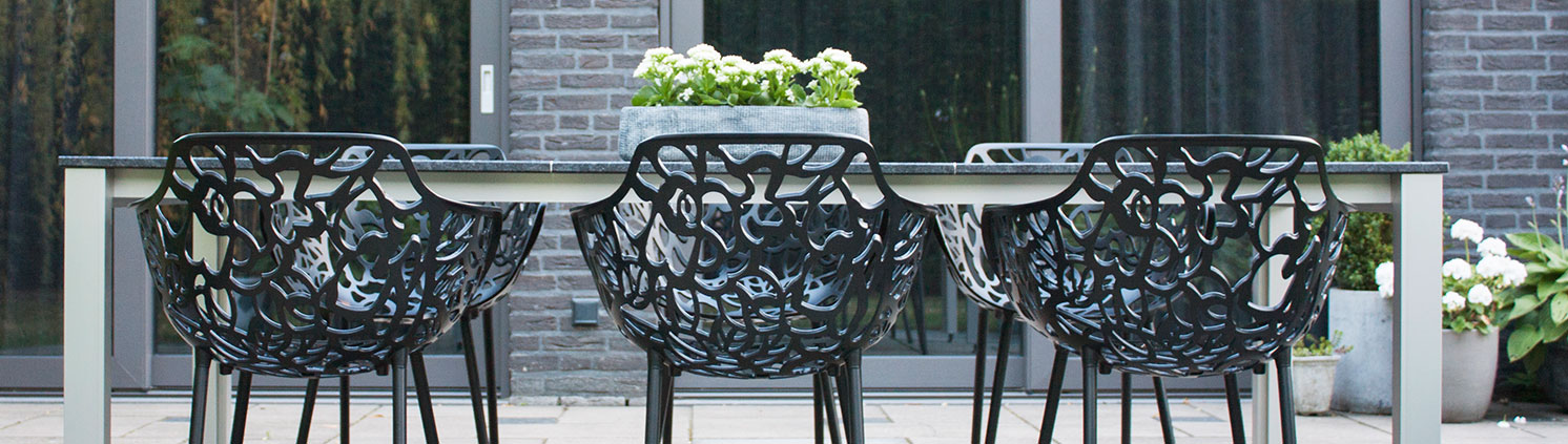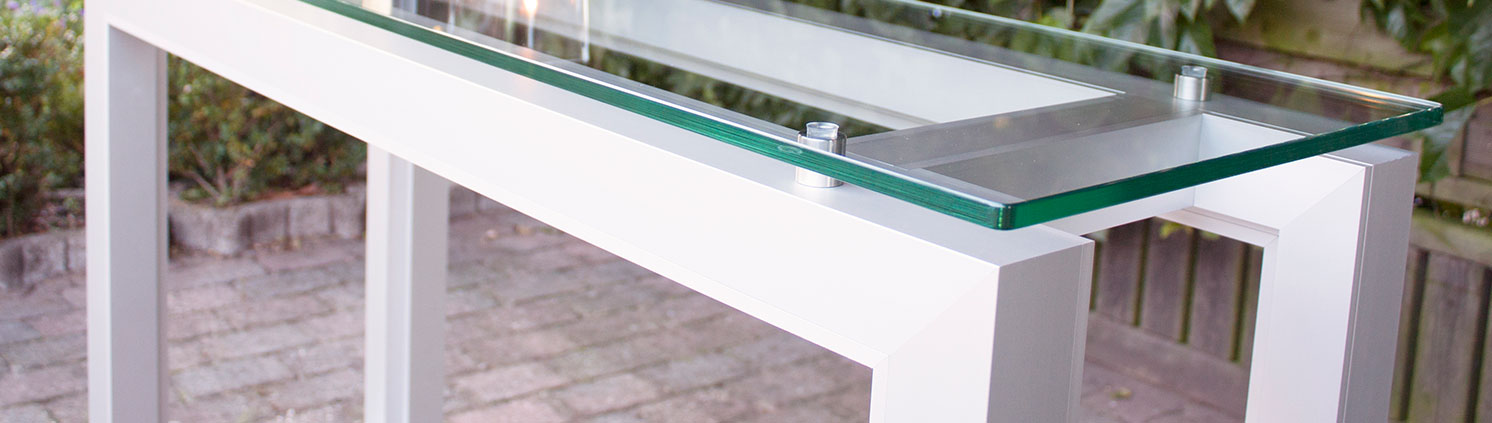 Nieuw in ons programma: NIN-design tafels en bars. In samenwerking met NIN-design hebben wij eigentijdse tafels en bars ontwikkeld. De diversiteit van de ontwerpen zijn nagenoeg onbeperkt. U creëert hiermee een prachtig transparant en modern uiterlijk voor zowel in de privé- als in de zakelijke markt. Denk eens aan bedrijfsbalies, besprekingstafels, eetkamertafels, tuintafels, salontafels, statafels, bars etc. Alles wordt op maat gemaakt en zijn voor zowel binnen als buiten geschikt. De constructies worden vervaardigd van robuuste geanodiseerde aluminium profielen die tegen elk weer bestand zijn. Door deze behandeling zijn ze zeer gemakkelijk schoon te houden hetgeen met roestvrij staal zeker niet het geval is. Denk maar eens aan het schoonhouden van de afzuigkap. Een ander nieuw product zijn de prachtige aluminium gegoten stoelen welke door NIN-design speciaal zijn uitgekozen. Hierdoor krijgt u een compleet plaatje.